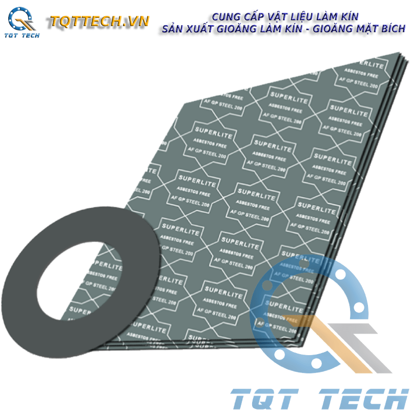 TQT TECH là đơn vị nhập khẩu trực tiếp sản phẩm từ hãng Superlite đầy đủ giấy tờ CO, CQ và các giấy tờ nhập khẩu có liên quan. Ngoài ra TQT chúng tôi chuyên gia công sản xuất gioăng không amiang GP 200 Steel theo kích thước yêu cầu và tiêu chuẩn mặt bích.